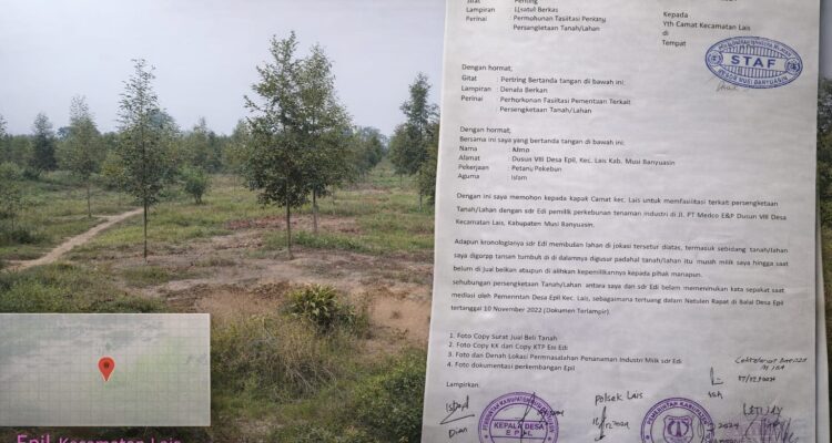 MUSI BANYUASIN,Hunternrws.com – Konflik agraria kembali mencuat di wilayah ini. Seorang warga Desa Epil, Kecamatan Lais, bernama Alkap, secara resmi melayangkan permohonan perlindungan dan fasilitasi