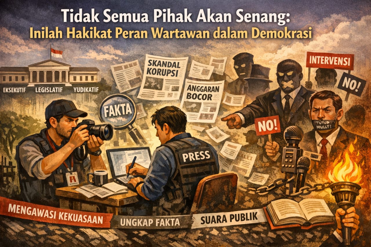 Hunternews.online – Dalam negara demokrasi yang sehat, keberadaan wartawan tidak pernah dimaksudkan untuk menyenangkan semua pihak. Wartawan juga bukan instrumen pujian bagi mereka yang sedang memegang kekuasaan. Fungsi utama pers justru berada pada ruang yang sering kali tidak nyaman bagi penguasa, mengungkap fakta, menguji kebijakan, serta memastikan publik mendapatkan informasi yang benar, akurat, dan dapat dipertanggungjawabkan.