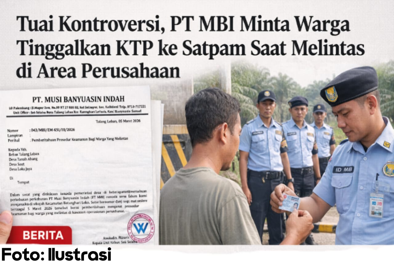 MUSI BANYUASIN, Hunternews.online – Kebijakan yang tertuang dalam surat resmi milik perusahaan perkebunan PT Musi Banyuasin Indah (PT MBI) menuai kritik tajam dari masyarakat di wilayah Kecamatan Batanghari Leko. Surat bernomor 043/MBI/EM-KSI/III/2026 tertanggal 5 Maret 2026 tersebut berisi pemberitahuan mengenai prosedur keamanan bagi warga yang melintas di kawasan operasional perusahaan.